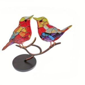 ガラスの鳥の置物 枝にあるステンドグラスの鳥 手作りのステンドメタルの鳥のデスクオーナメント 耐久性のあるマルチカラーのミニ鳥の像テーブルオーナメント 置物 オブジェ リビング インテリア オシャレ かわいい 雑貨 置き物 小鳥 壁 装飾 飾り デスクトップ 家の装飾 誕生日プレゼント用 (アクリル,2個鳥)