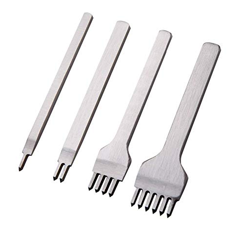 レザークラフト用の菱目打ち4本セットです。4mmピッチで揃っており、革に美しいステッチを施すために最適なツールです。初心者からプロまで幅広く使える高品質な道具です。