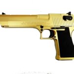 タナカのデザートイーグル .50AE ブライトゴールドコーティングモデルは、重厚感ある仕上げとリアルな外観が特徴。18歳以上向けのモデルガンで、詳細な造形と金メッキが施されています。
