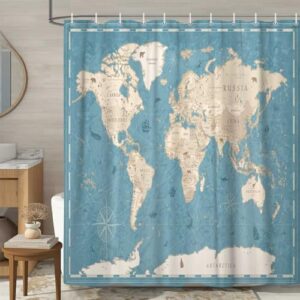 世界地図シャワーカーテン 世界地図 国家教育ファブリックシャワーカーテンセット バスルーム用 地理教育ファブリック バスルームシャワーカーテン フック付き 子供用バスルーム 60×70インチ