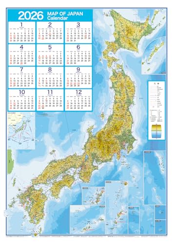 壁に貼る地図カレンダー・日本全図 2026は、美しい日本の地図を背景に、各月のカレンダーが掲載された使いやすいアイテムです。地理感覚を養いながら、毎日の予定を管理できます。