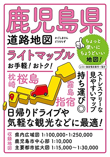 ライトマップル 鹿児島県道路地図は、詳細な道路情報、観光スポット、宿泊施設などを掲載。観光や旅行に最適で、周辺の地形も豊富に描かれています。使いやすさ重視のデザインが特徴です。