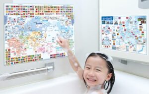 世界地図シャワーカーテン 世界地図 国家教育ファブリックシャワーカーテンセット バスルーム用 地理教育ファブリック バスルームシャワーカーテン フック付き 子供用バスルーム 60×70インチ