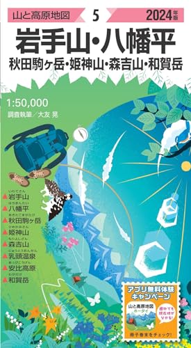 山と高原地図 岩手山・八幡平 秋田駒ヶ岳・姫神山・森吉山・和賀岳 2024は、岩手と秋田の主要な山岳地帯を詳細に記した地図です。登山計画に役立つ情報が満載で、勾配やトレイルの状況を把握できます。