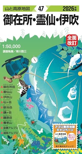 山と高原地図 御在所・霊仙・伊吹 2026は、アクセスしやすい山域を詳しく収録した地図です。登山者向けにルートや標高、トイレの位置情報が充実しており、安全な登山をサポートします。