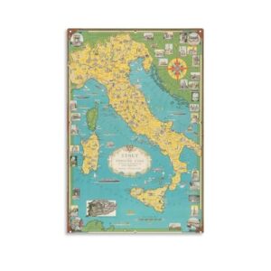 イタリア地図 地図 ポスター サイン メタル ブリキ看板 壁アート 装飾 – レトロサイン クール 壁アート キャンバス パネル オフィス装飾 ぶら下がる 版画 ギフト16x24inch(40x60cm)