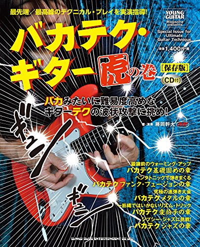 「バカテク・ギター虎の巻[保存版](CD付)」は、ギター技術を楽しく学ぶための教則本です。豊富なテクニックを収録し、CD付きで実音を確認しながら練習できます。初心者から上級者まで楽しめる内容です。