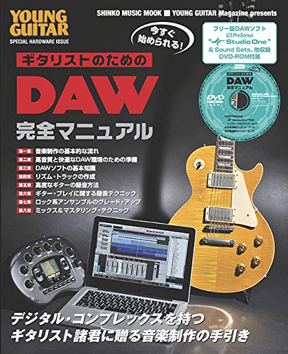 「今すぐ始められる! ギタリストのためのDAW完全マニュアル(DVD-ROM付)」は、シンコー・ミュージックMOOKからの出版。初心者向けにDAWの基本から使い方まで解説し、実践的なテクニックやトラブルシューティングも充実。