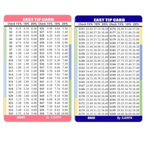 財布用チップ計算カード 薄型ポケット対応,2枚組 ポケットスリム 小型 15%/18%/20% 早見表,財布サイズカード | レストラン ホテル 配達サービス ウェイトレス 男性 女性 向け チップ計算用カード