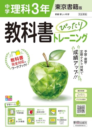 中学 教科書ぴったりトレーニング 理科3年 東京書籍版は、教科書に完全対応したオールカラーの学習ツールです。定期テスト予想問題や赤シート、重要語句カード、無料まとめ動画、アプリ、自動採点テスト付きで、効率的に学習できます。