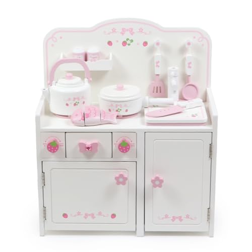 おままごとキッチン マザーガーデンの木製スウィートストロベリーキッチンは、完成品で小物9点付き。かわいらしいデザインと高品質な素材で、安全に遊べるおままごとアイテムです。