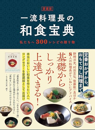 愛蔵版 一流料理長の和食宝典は、日本料理の技法やレシピを豊富に収録した専門書です。プロの料理長による解説付きで、初心者から上級者まで楽しめる内容となっています。圧倒的な情報量で和食の魅力が詰まった一冊です。