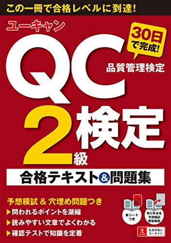 ユーキャンのQC検定2級30日で完成! 合格テキスト&問題集は、赤シート、模擬試験、穴埋め問題付きの内容で、効率的に学習し合格を目指せる一冊です。