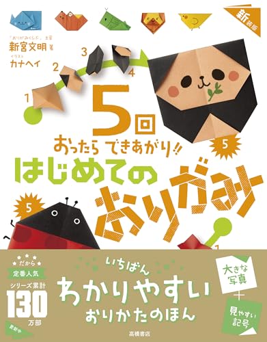 『5回おったらできあがり!! はじめてのおりがみ 新装版』は、初心者に最適な折り紙のガイドです。基本的な折り方から楽しい作品が紹介され、親子で楽しめます。シンプルな手順で、5回の折りで完成できる作品が特徴です。