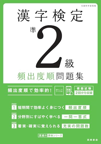最新試験傾向に対応した漢字検定準2級問題集です。頻出漢字を網羅し、解説付きで理解を深める内容。模擬試験や過去問も収録し、実践的な学習が可能。合格を目指す方に最適な一冊。