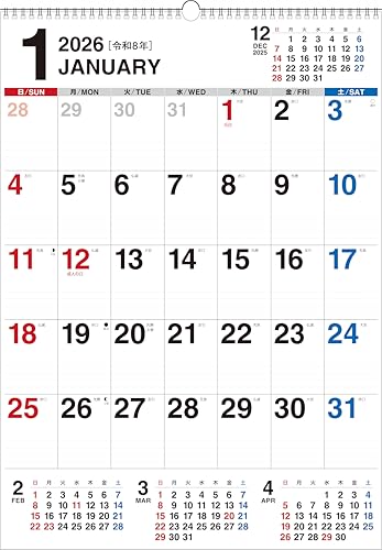 2026年の書き込み式シンプル壁掛けカレンダー【K14】は、A2タテサイズで、使いやすいレイアウトが特徴です。永岡書店による製品で、日々の予定を書き込むのに便利な一品です。