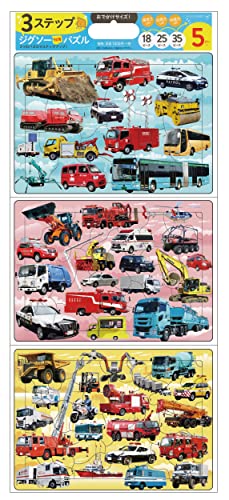 3ステップジグソー知育パズル「はたらくくるま」は、子ども向けの楽しいパズルです。3段階の難易度で、さまざまな働く車をテーマにしています。おでかけサイズで持ち運びにも便利。