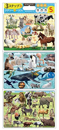 3ステップジグソー知育パズル「どうぶつだいずかん」は、おでかけサイズで持ち運びに便利なパズルです。動物の世界を楽しみながら、知育ができる設計になっています。子供の成長をサポートする楽しいアイテムです。