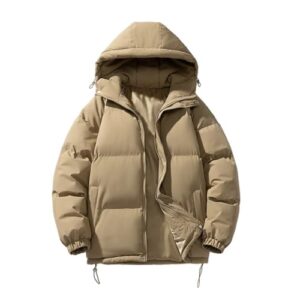 [Kayiyasu] ダウンジャケット メンズ 大きいサイズ 中綿入り 防寒着 防風 冬服 8色 厚手 フート付き ブラック アウトドア 日常 カジュアル ゆったり おしゃれ かっこいい(XL カーキ)
