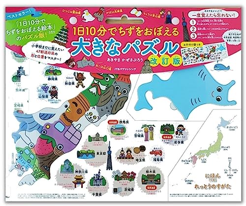 「1日10分でちずをおぼえる大きなパズル 改訂版」は、日本の都道府県を楽しく学べるパズルです。各パーツを組み合わせながら地理の知識を深め、記憶力を高める手助けをします。