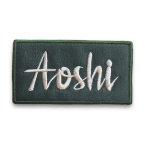 [刺繍ザウルス] レザー調 ロゴ風 セミオーダー お名前ワッペン (ベルクロ(面ファスナー)加工・フック側 黒, 8文字)