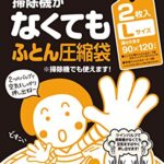 日本クリンテックの布団圧縮袋Lサイズは、90cm×120cmの間口で2枚入り。手押し掃除機対応のツインバルブ設計で、簡単に収納が可能。引越や出張にも最適です。