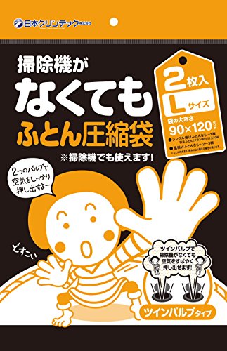日本クリンテック 掃除機がなくても布団圧縮袋 Lサイズ 2枚入り 間口90cm奥行120cm ふとん圧縮袋 手押し掃除機対応 ツインバルブ 収納 引越 出張の製品情報
