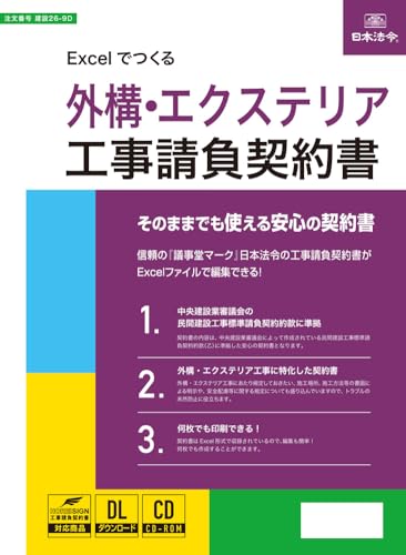 Excelで作成可能な外構・エクステリア工事請負契約書(建設26-9D)は、具体的な工事内容、契約金額、工期、保証条項などを明記した標準テンプレートです。