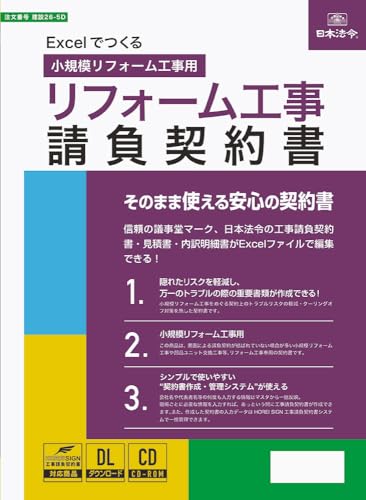 Excelでつくるリフォーム工事請負契約書 建設26-5Dは、契約条件や工事内容を明確に記載した雛形の書式です。使いやすいレイアウトで、法的要件を満たし、双方の理解を助けます。