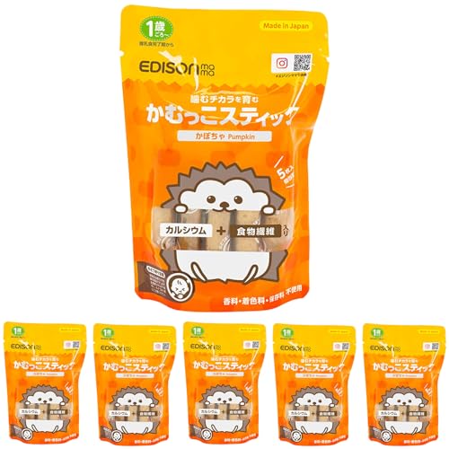 EDISONmama(エジソンママ) かむっこスティック かぼちゃは、1歳から食べられる健康的なおやつです。5枚入りのパックが6セットで、お子様の成長をサポートする栄養価の高いおやつとして人気です。