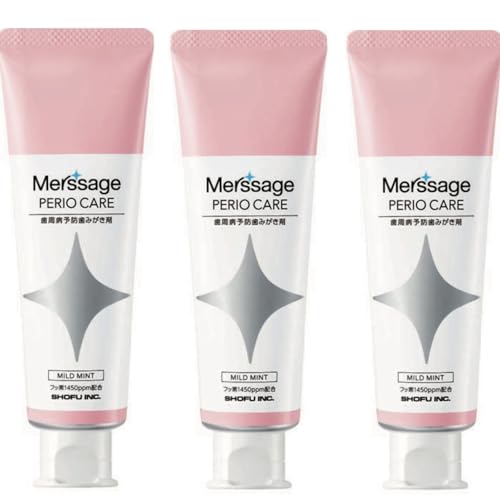 松風メルサージュ ペリオケアは、歯科専売の医薬部外品で、80gチューブに1450ppmのフッ素を含んでいます。歯周病予防に効果的な設計で、お口の健康をサポートします。