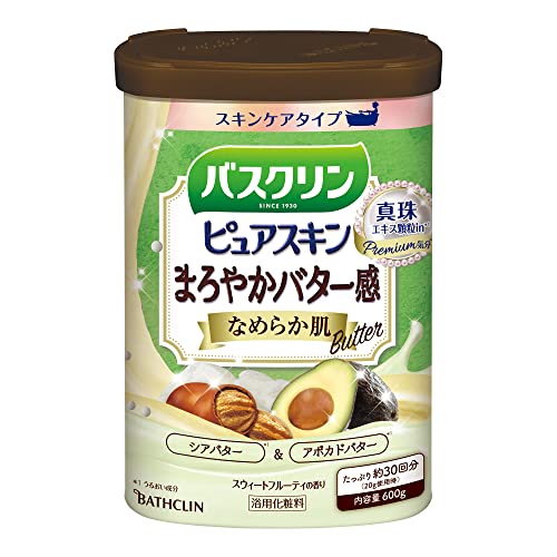 バスクリン ピュアスキンは、なめらかな肌へ導く入浴剤です。600g(約30回分)で、スキンケアに特化したにごりタイプ。香りが心地よく、リラックスできるバスタイムを提供します。