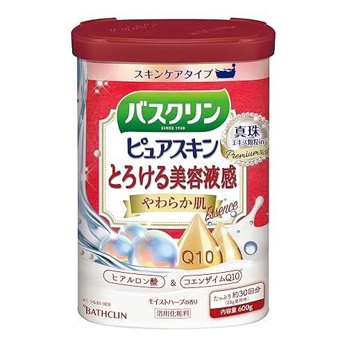 バスクリンピュアスキン入浴剤は、やわらか肌を実現するスキンケアにごりタイプです。600g入りで約30回分。肌をしっとりさせ、バスタイムを贅沢に演出します。