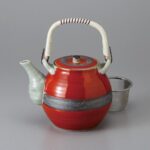 山下工芸の急須は和食器で、寸法は15×15.6cm、容量は1450㏄です。朱巻金彩の万能8号土瓶で、金網が付いており、使いやすさと美しさを兼ね備えています。
