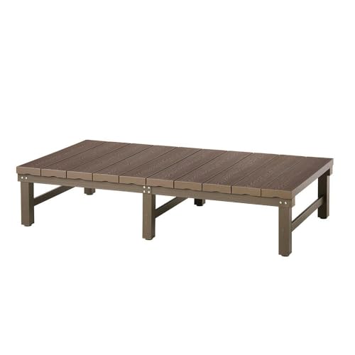 カインズの人工木アルミデッキは、幅180cm、奥行90cm、高さ40cmのブラウン色。耐久性に優れた人工木材を使用し、屋外での利用に最適な縁台です。置くだけで簡単に設置可能なエクステリアアイテムです。