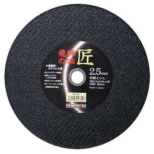 日本レヂボンの飛騨の匠 ステンレス・金属用切断砥石は、305mm径で、ステンレスや各種金属の高精度な切断が可能です。耐久性に優れ、優れた切断性能を発揮します。
