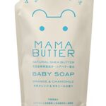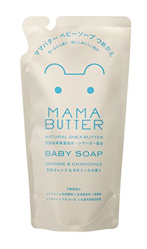 MAMA BUTTERの無添加ベビーソープ泡タイプは、オレンジとカモミールの香りで、250mlで新生児から使用可能。しっとりとした洗い上がりで、あせもやおむつかぶれ対策に最適です。詰め替え用。