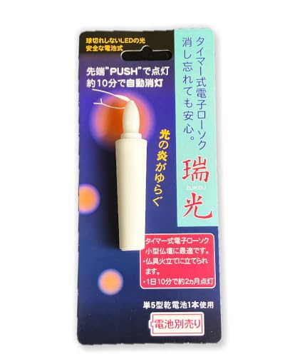 LED電子ローソク「瑞光」は、10分タイマー付きの電池式ローソクです。手軽に使用でき、ムードを演出します。付属の電池1個により、すぐに利用可能です。サイズは小さめで、インテリアにも最適です。