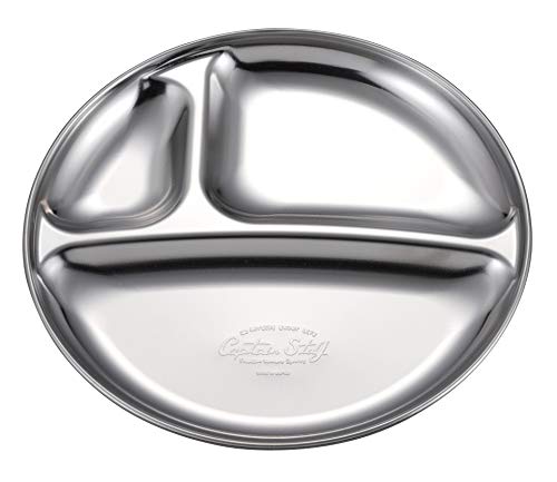 キャプテンスタッグのステンレス製キャンプ仕切りプレートは、外径18cm、高さ1.6cmで、日本製の高品質な食器です。耐久性があり、アウトドアでも安心して使用できます。