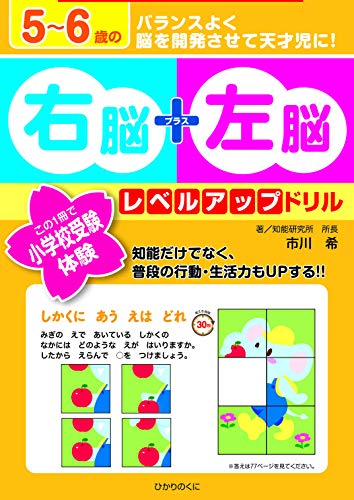 「5~6歳の右脳+左脳レベルアップドリル」は、小学校受験に向けた知能開発を目指した教材です。遊び感覚で論理的思考や記憶力を育成し、受験対策に役立つ問題が多数収録されています。