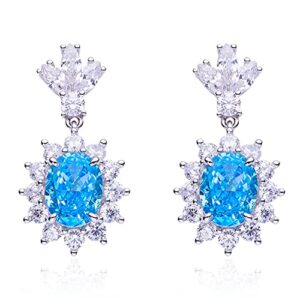 Gem’s Beauty ひまわり ラグジュアリー 高炭素ダイヤモンド ドロップイヤリング 18K ホワイトゴールドメッキ 925スターリングシルバー クラシックイヤリング ガールズ ママ 妻 レディース 娘 彼女, スターリングシルバー, ハイカーボンダイヤモンド