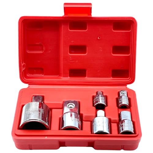 TIGRE BLANC ソケット変換アダプター6点セットは、1/4、3/8、1/2、3/4インチ対応で、クロムバナジウム製の銀色仕上げ。インパクトレンチでの使用に最適です。