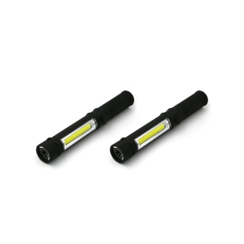 LEDライト 電池式ハンドライト。超強力なCOBLED作業灯、マグネット付きで作業時に便利。ブラックの2個セット。持ち運びに最適で、多用途に使える懐中電灯。
