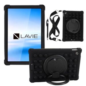 Aokil For NEC PC-T1055KAS LAVIE Tab T10 回転ケース 10.1型 LAVIE Tab T10 PC-TAB10F03用 背面カバー ソフト シリコン製 耐衝撃 軽量 持ち手付き 360度回転スタンド機能 タッチペンホルダー 肩掛けベルト付き おしゃれ アウトドア 子供 や家族用-(ブラック)