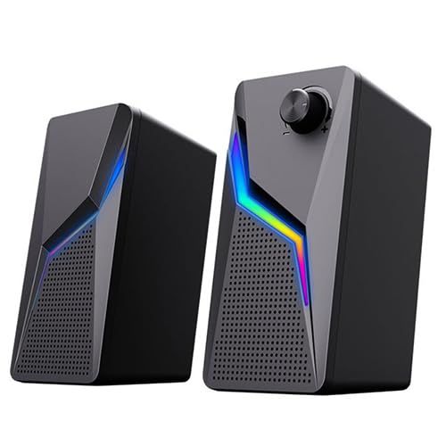 このゲーミングスピーカーはRGB装飾照明を備え、有線接続で高品質な音を提供します。3.5mmオーディオケーブルとUSB給電ケーブルが付属し、PC、テレビ、タブレット、スマートフォンに対応しています。
