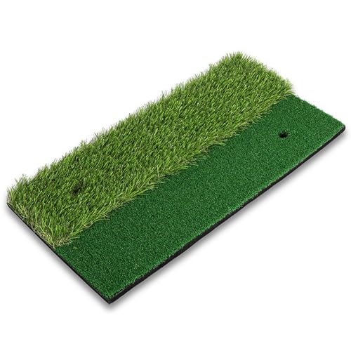 ゴルフマット 2WAYはフェアウェイとラフの両面で使用可能。室内外で練習できる人工芝製で、サイズは30×60cm。ティーにも対応しており、素振りやショット練習に便利です。