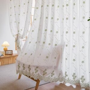 レースカーテン 透けない 遮光 刺繍レース レースカーテン UVカット 小窓 夜も見えない 外から見えにくい カーテン レース 遮熱 断熱 保温 カーテンフック付 目隠し 遮像 北欧 おしゃれ 間仕切り 可愛い 無地 洗える 出窓 子供部屋 幼稚園 グリーン【幅150cm*丈200cm*1枚 片開き】 ANJYUU