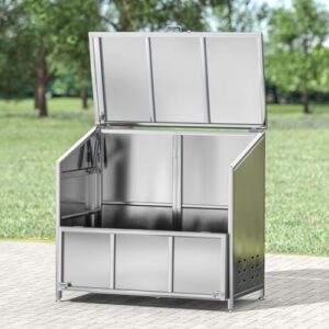 ゴミ箱 屋外 ゴミステション 大きい ステンレス カラス除け ゴミ荒らし防止 カラス除け 野良猫 小動物 対策 高強度 収集庫 大型 ごみ収集ボックス 庭用 ふた付き アジャスター 組立式 (90cm)