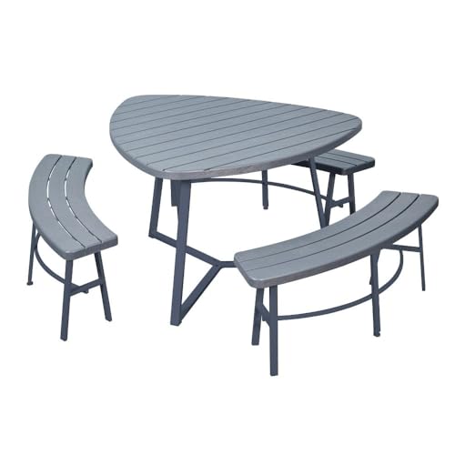 ミニマルガーデンテーブル4点セットは、スタイリッシュなグレー色で、コンパクトなデザインが特長。耐候性に優れ、屋外でも使用可能。クッション付きの椅子で快適な座り心地を提供します。