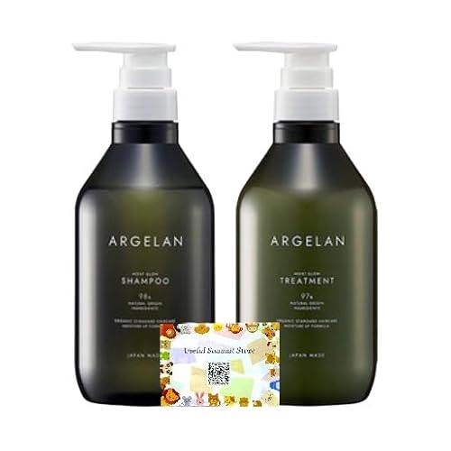 アルジェラン モイストグロー シャンプーとトリートメントのセット。各480ml。オーガニック成分配合で豊潤な泡立ちと植物補修効果。うるおいとツヤを与え、健康的な髪に導きます。ポケットティッシュ付き。
